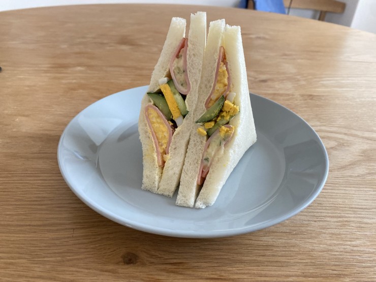 最近の断面が映えるようなカラフルなものでなく、おしゃれなバケットを使ったものでなく、ふわふわの食パンを使った懐かしいサンドイッチです。