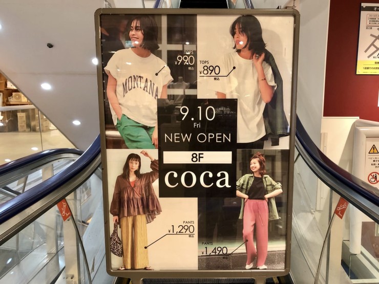 cocaは、ちょっとお洒落な日常着を、お求めやすい価格で提供しているお店です。湘南藤沢オーパの8階に9/10(金)にオープンします!