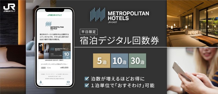 首都圏を中心にホテルを展開する日本ホテル株式会社は、首都圏・東北エリアで展開する「メトロポリタンホテルズ(対象14ホテル)」にてご利用いただける「メトロポリタンホテルズ 宿泊デジタル回数券[平日限定]」を、2022年5月13日(金)より販売しました。