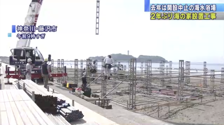 江ノ島周辺の海岸で海の家の建設が始まったというニュースです。