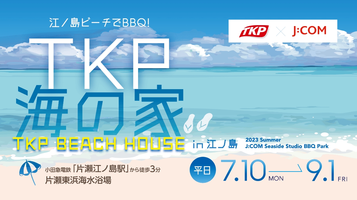 株式会社ティーケーピーは、J:COMが江の島・片瀬東浜海水浴場にて運営する海の家を「TKP BEACH HOUSE」として販売開始する。 2023年7月10日~9月1日の平日限定で、施設の一部を「TKP BEACH HOUSE」に転換するというもので、新しいスタイルの海の家として、ワーケーションや企業の懇親会・交流会の会場などの利用を想定している。 施設内の特設ドームハウスは冷房設備やWi-Fi、...